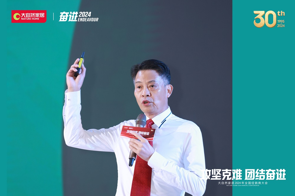 大會上,大自然家居集團董事長、集團總裁CEO佘學彬進行了《厚積薄發 全線出擊》的主題演講,他在主題報告中明確了集團的戰略方向,為經銷商樹立了信心和動力。同時,佘學彬深入分析了當前市場形勢和競爭環境,并提出了應對挑戰、實現可持續發展的策略,他鼓勵經銷商們在團結合作的基礎上,積極創新,共同應對行業變革。在新征程上,大自然家居將與經銷商伙伴攜手并肩,共同努力,厚積薄發,全線出擊,開創大自然家居的美好未來!