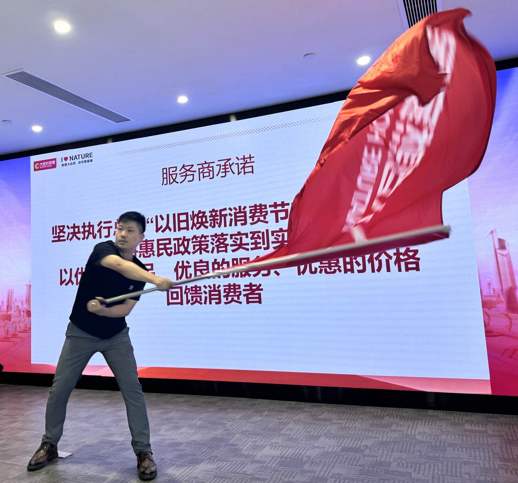 紙上談兵終覺淺,落到實處才是真。在啟動儀式上,大自然家居服務(wù)商代表鄭重宣誓,堅決將“以舊煥新消費節(jié)”惠民舉措貫徹落地,將活動氛圍推向高潮。響徹會場的誓詞,表明大自然家居自上而下將煥新活動落到實處的決心,用優(yōu)質(zhì)的產(chǎn)品、優(yōu)良的服務(wù)、優(yōu)惠的價格與用戶搭建信任橋梁,為用戶安心以舊換新保駕護航。
