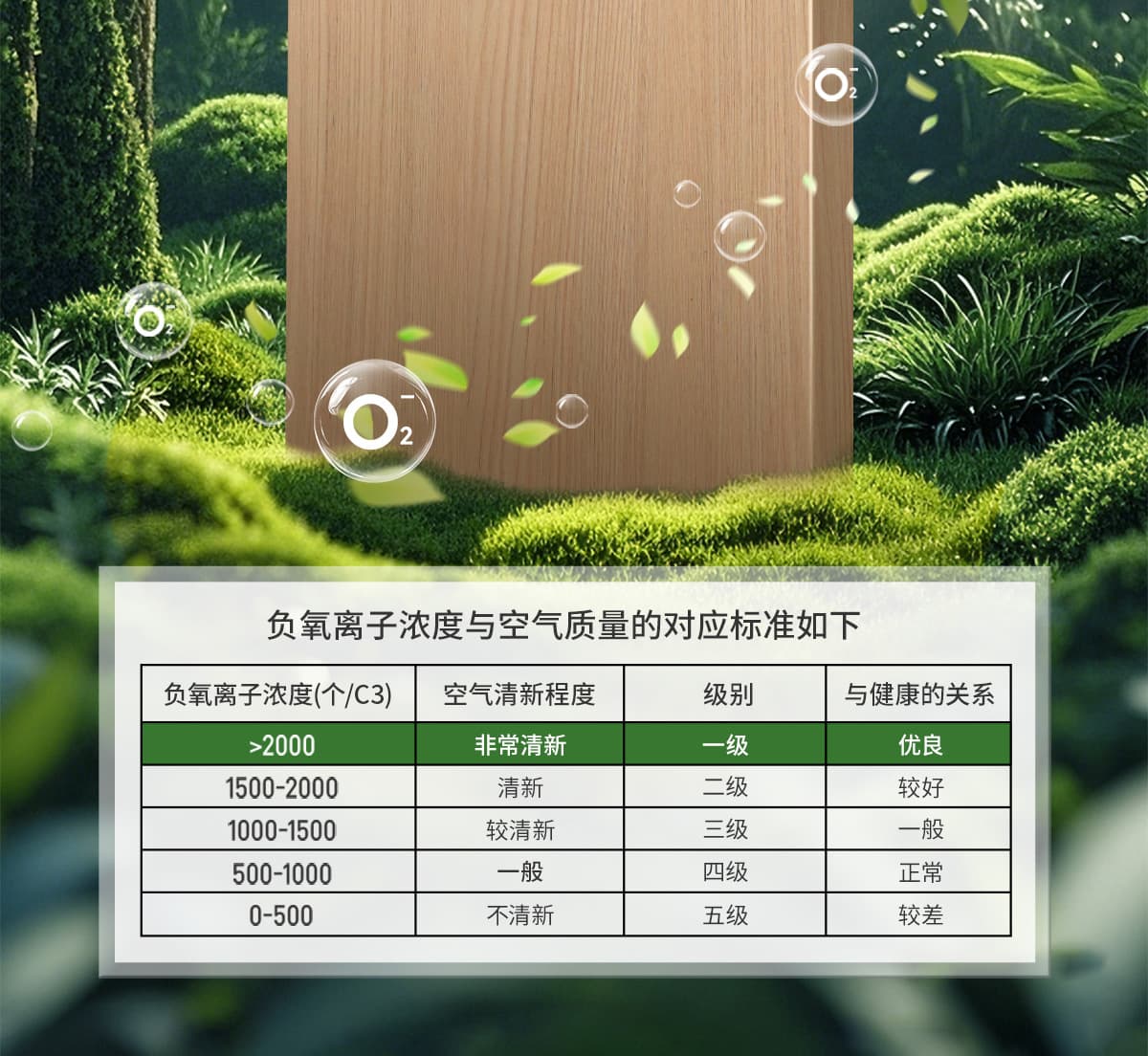| 誘發空氣負離子量 | 比基礎環境提高10倍+ |